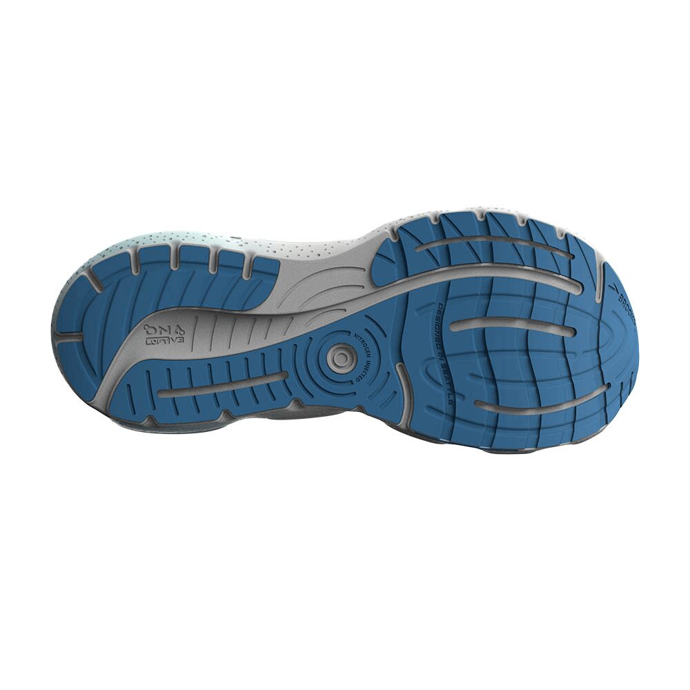 Women's BROOKS® GLYCERIN GTS 20 :: Super-soft comfort for stability runners! Your Women's Brooks Glycerin GTS 20 running shoe has a reimagined cushioning system and sole, offering you the smoothest ride yet. Thanks to the lightweight, Nitrogen-infused DNA LOFT v3 foam, this shoe is more durable, responsive, and comfy than before. Integrated GuideRails® technology reduces excess shin and heel rotation for a more natural stride. To add even more smoothness to each step (because why not?!), a wider platform was designed for the midsole and outsole of your Glycerin GTS 20 providing an ultra-stable base during transitions.