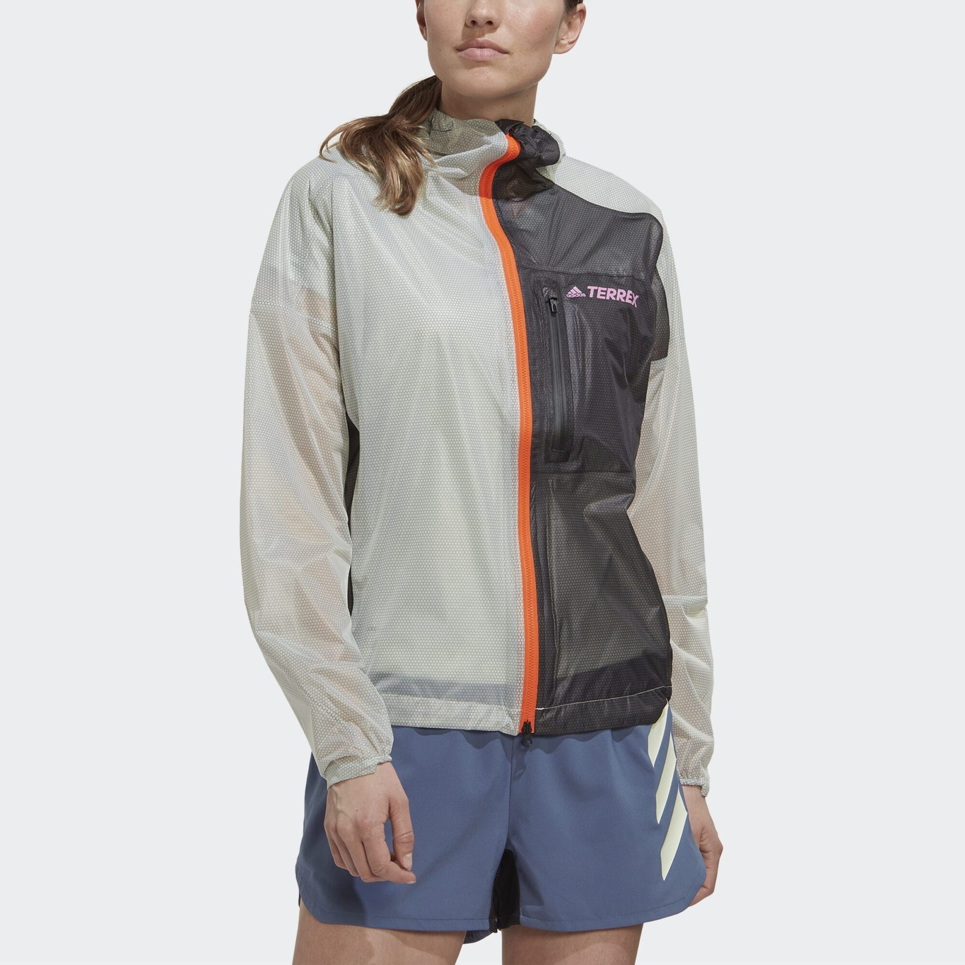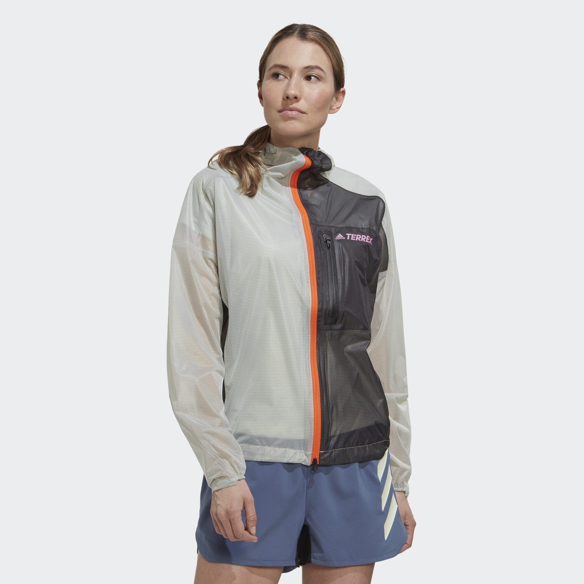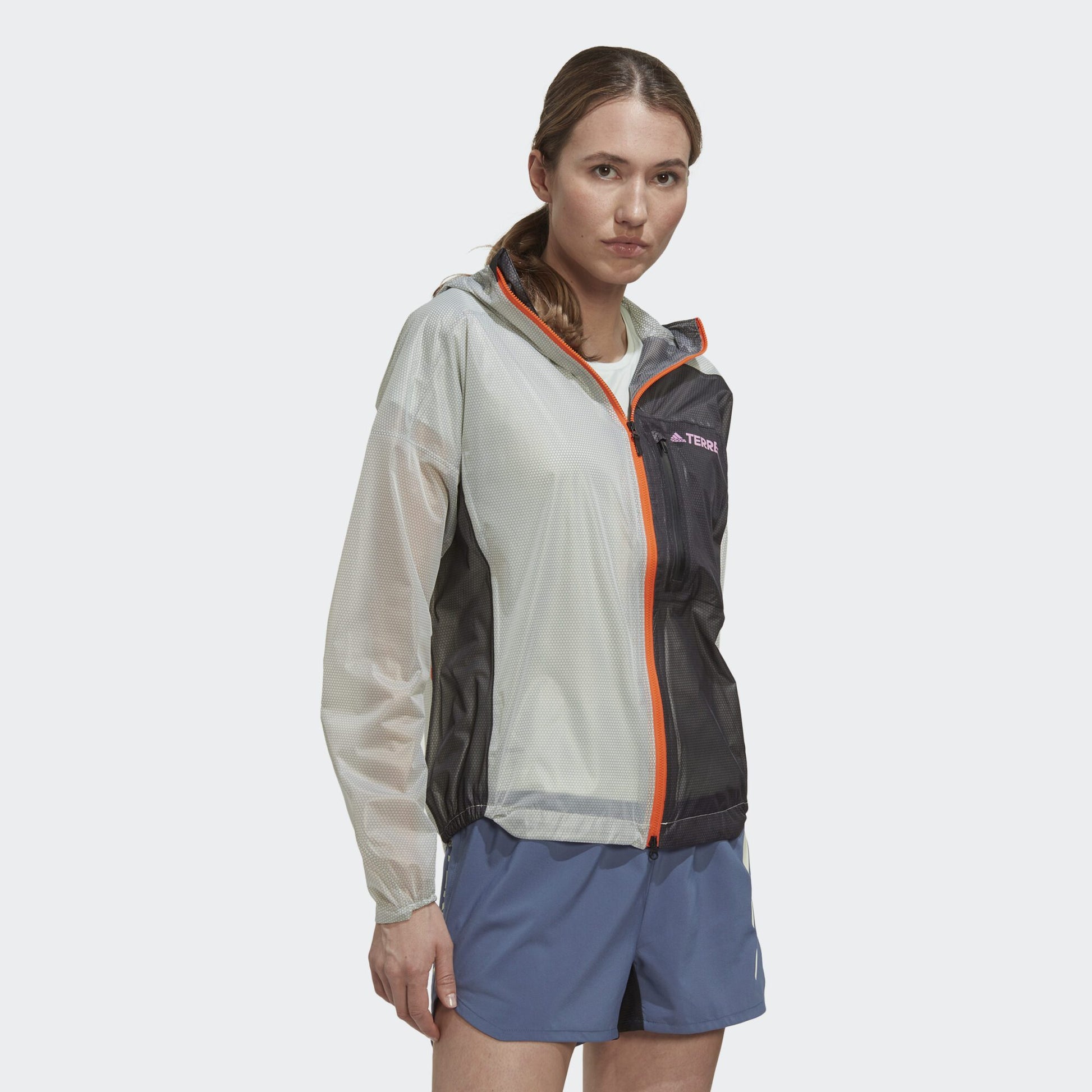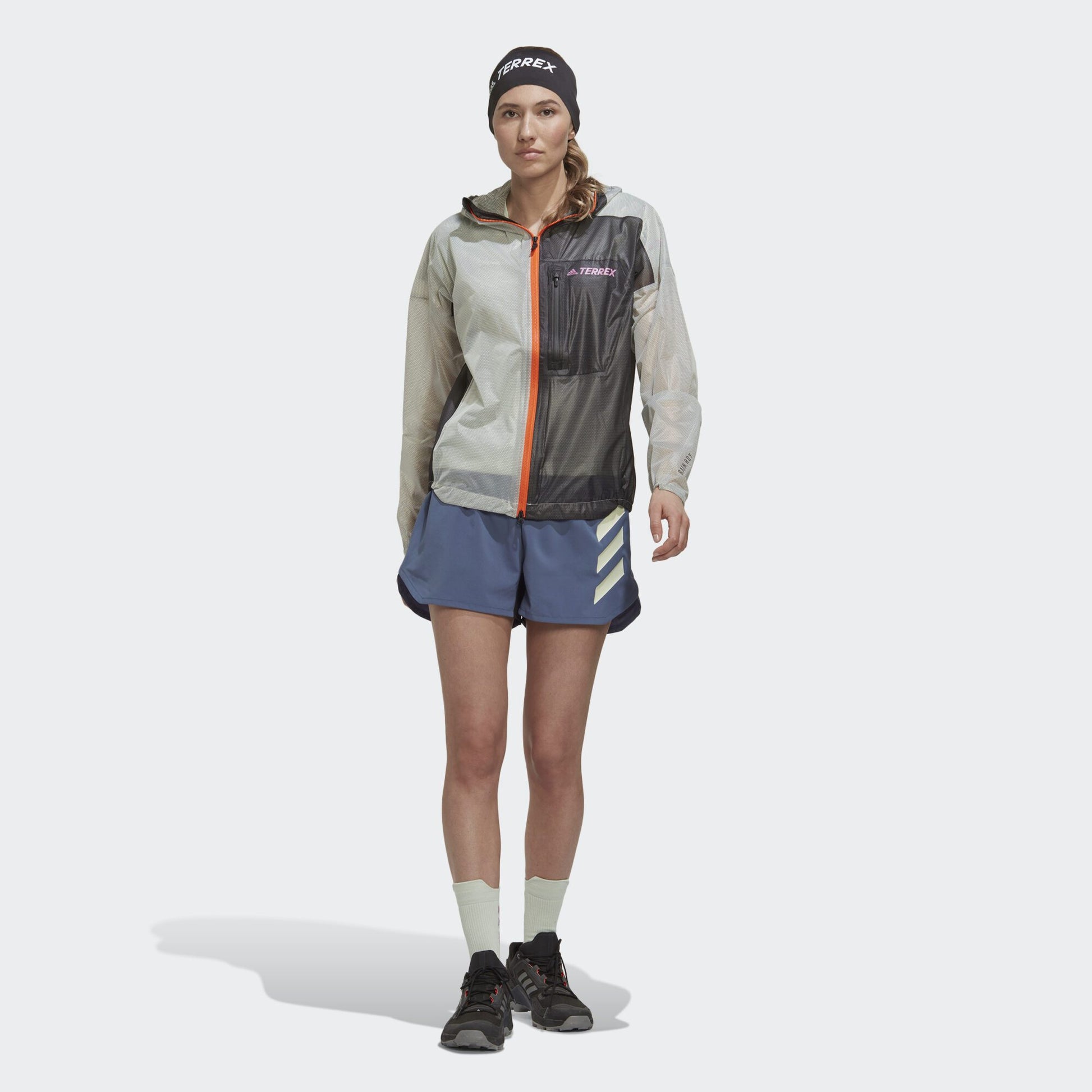 Extended adventure or quick after-work run, this adidas Terrex rain jacket keeps it light, packable and breathable. The lightweight 2.5-layer design includes stretch for a natural range of motion and 360-degree reflectivity for low-light conditions. RAIN.RDY seals out water while letting your body breathe. It packs down small for easy stowing in a running vest when the sun decides to shine.