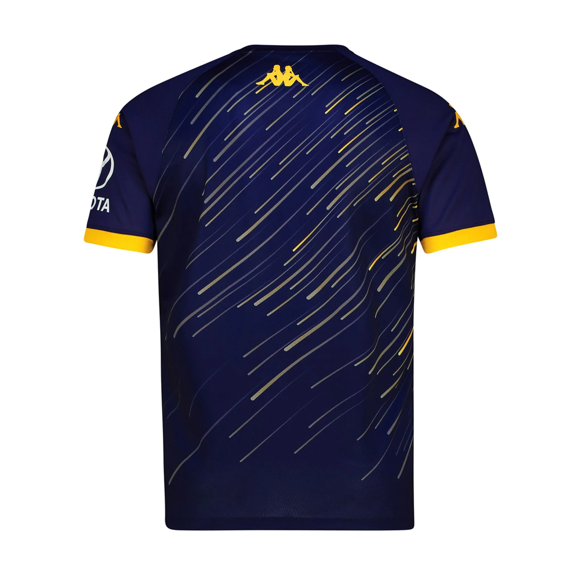GARA. Pre-match shirt for men in recycled textured fabric and with HYDRO-WAY PROTECTION technology. SLIM FIT. Short sleeve, round neck, insert on bottom sleeve and printed graphic on front and on back. Omini logo and sponsor logo on chest, on sleeves and on back applied with heat transfer. Team logo in HD-Print.