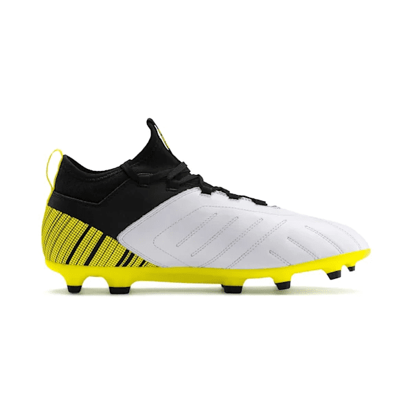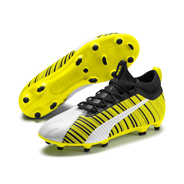 The PUMA ONE introduces a new upper to the game that combines lightweight stability and premium touch into an aggressive and eye-catching asymmetric split design. For the casual soccer player, the PUMA ONE 5.3 features a flexible knitted sock collar and leather vamp for ultimate control and touch on the ball.
