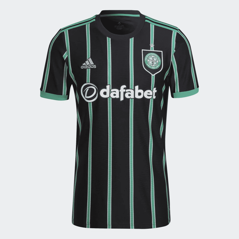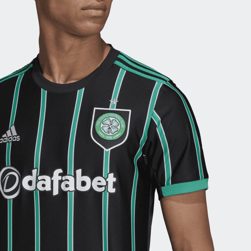 An eye-catching away shirt with early '90s vibes. This adidas Celtic FC football jersey updates a classic look with its pinstripe-style design and shield badge. Mesh panels and moisture-absorbing AEROREADY work together to keep you comfortable. The "Celtic FC" signoff comes from the stained glass window that used to welcome visitors to Celtic Park. Made with 100% recycled materials, this product represents just one of our solutions to help end plastic waste.