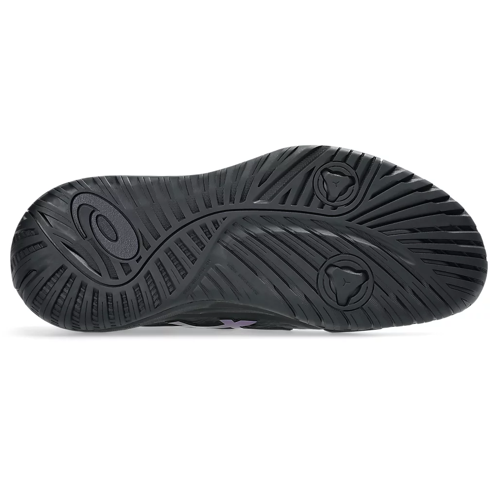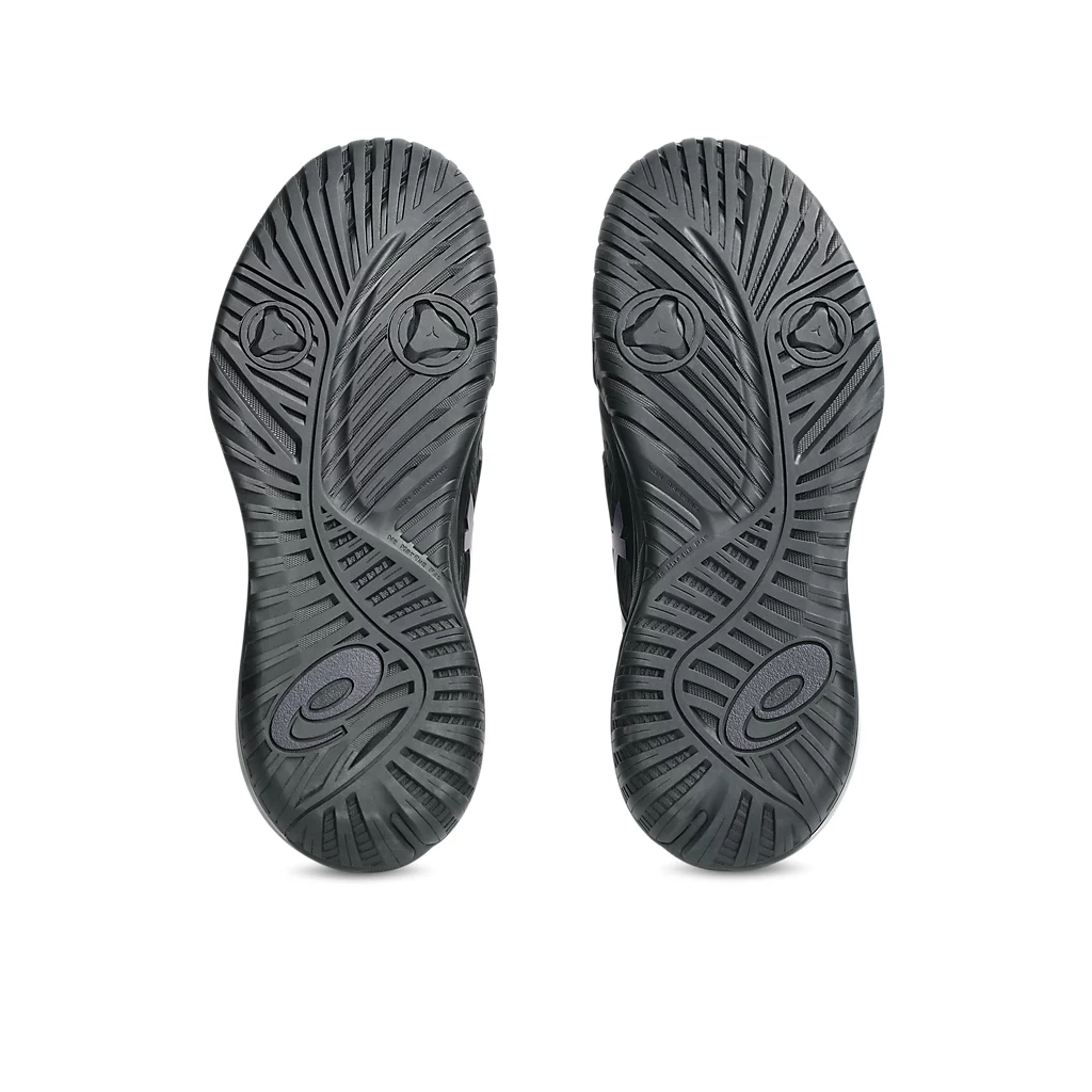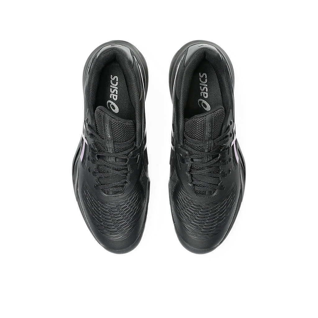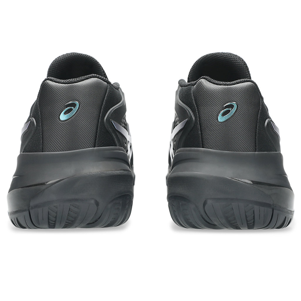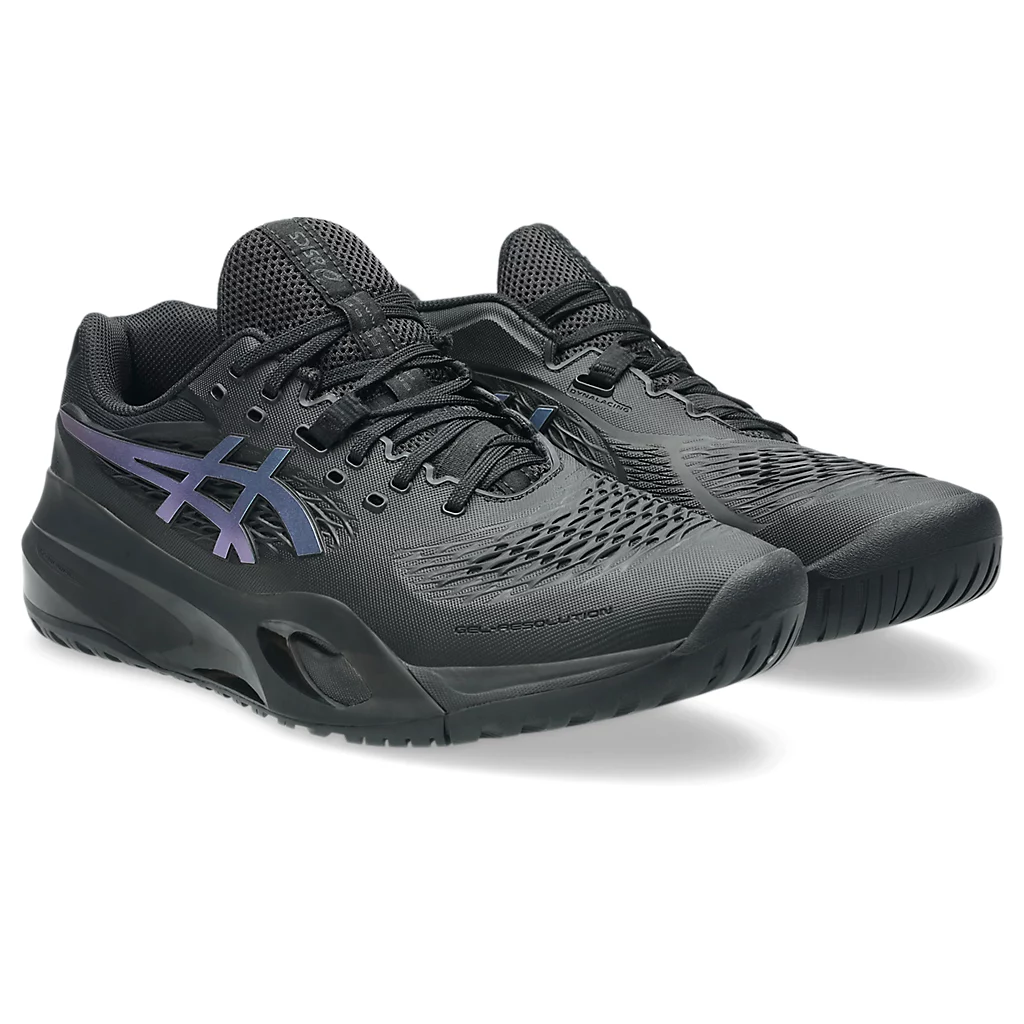 The GEL-RESOLUTION® X NIGHT ENERGY tennis shoe creates advanced comfort for players who like to control the game from the baseline. It's rendered with a primarily black color palette that's offset with prism blue accents for contrast.
