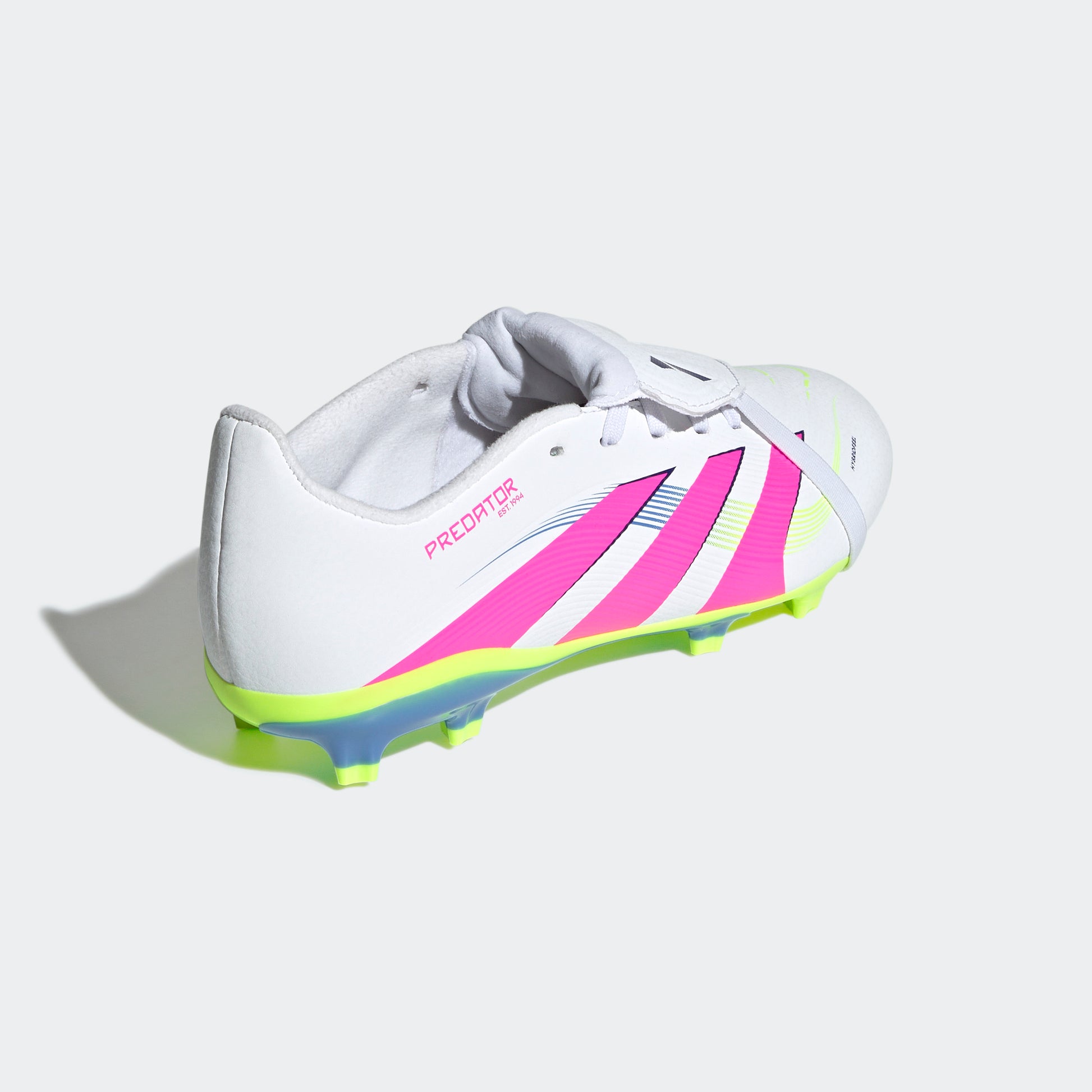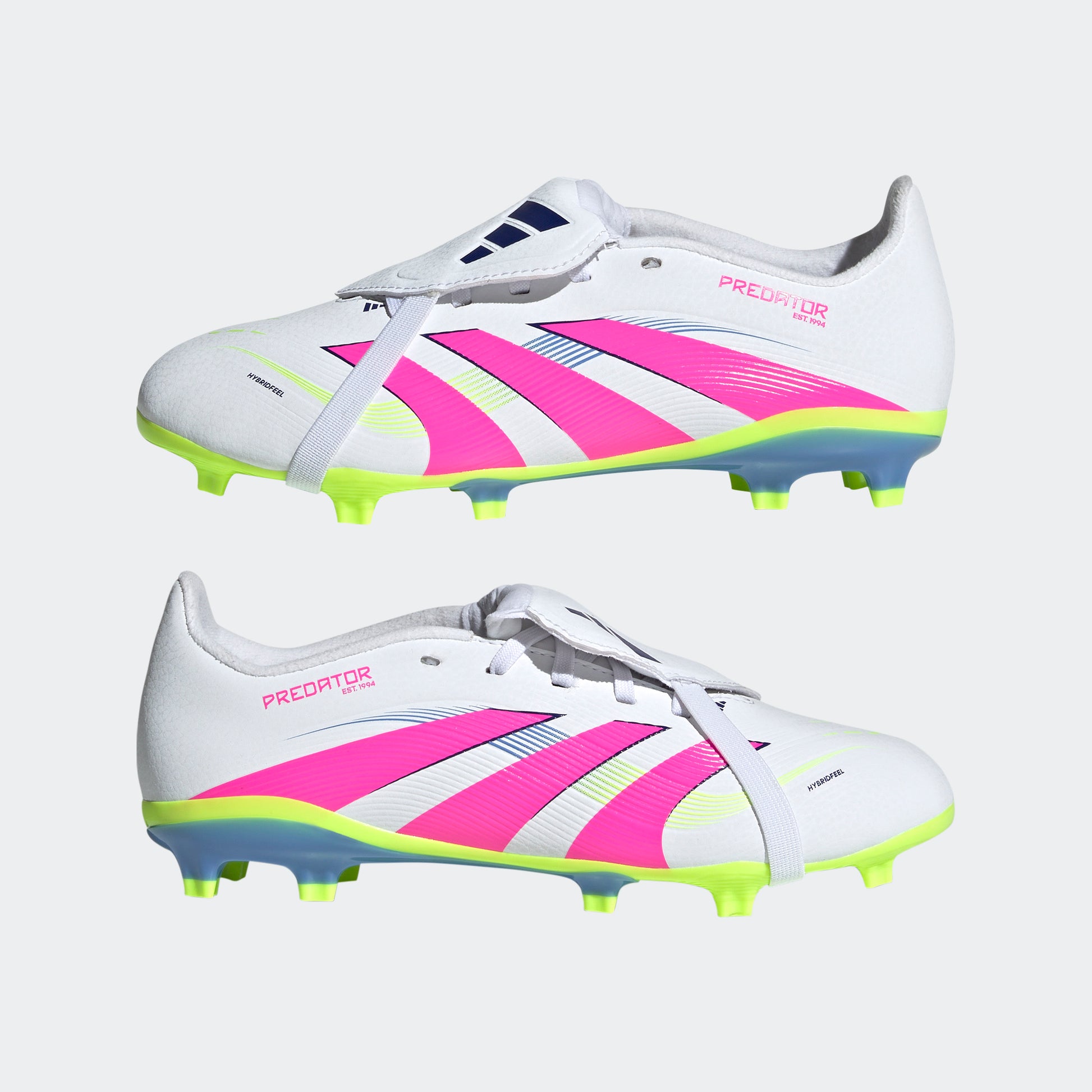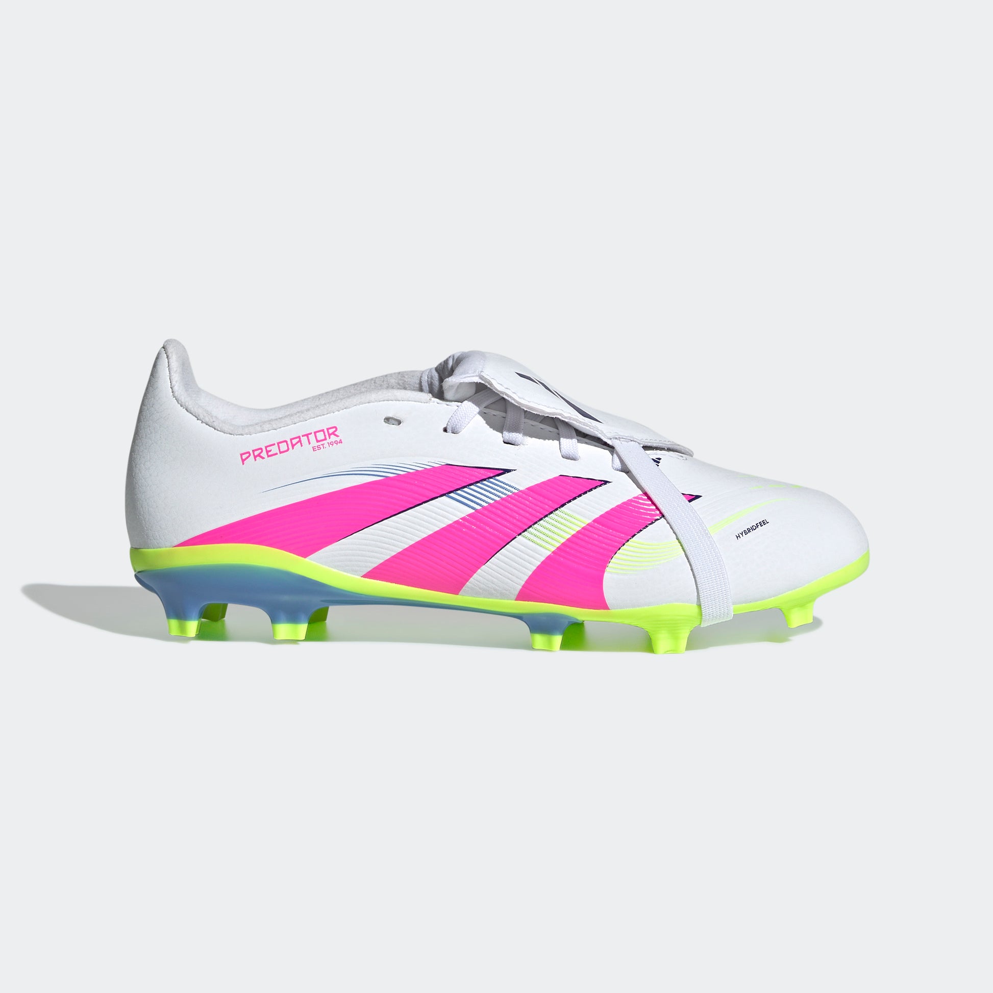 Go into every game knowing you'll score in juniors' adidas Predator League boots crafted for goals. Their Hybridfeel upper incorporates an all-over 3D texture, a fold-over tongue and grippy Strikescale fins to help you control the football during strikes. A specialist outsole ensures you're in the right place at the right time on firm ground. This product features at least 20% recycled materials. By reusing materials that have already been created, we help to reduce waste and our reliance on finite resources and reduce the footprint of the products we make.